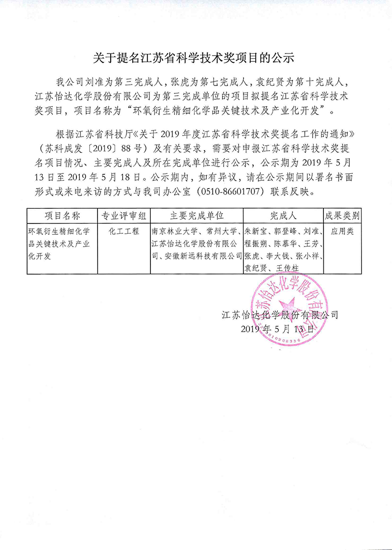 關于提名江蘇省科學技術獎項目的公示